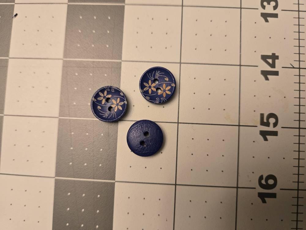 button is solid blue with gold flowers painted on one side - kind of a concave shape